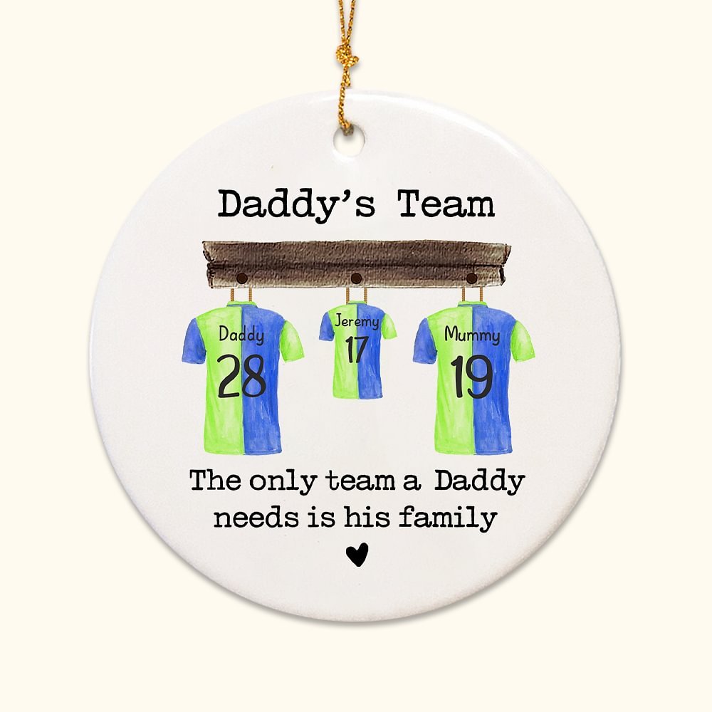 Our football family shirt Christmas ornament allows you to Personalise the names, and numbers of your family members, creating a unique family football team that represents your family's love for the football. The customizable design makes it a perfect gift for fathers, grandfathers, or husbands who are passionate about football.