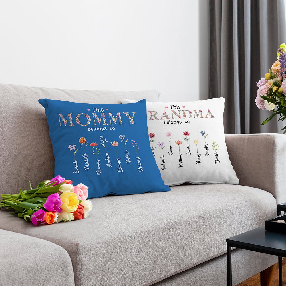 Our birth flower pillow cover is a heartfelt home decor. Each pillow cover features a stunning illustration of birth flowers representing the mom or grandma and her loved ones, and the text "This mommy(or other nicknames)belongs to", making it a thoughtful warming decor.
