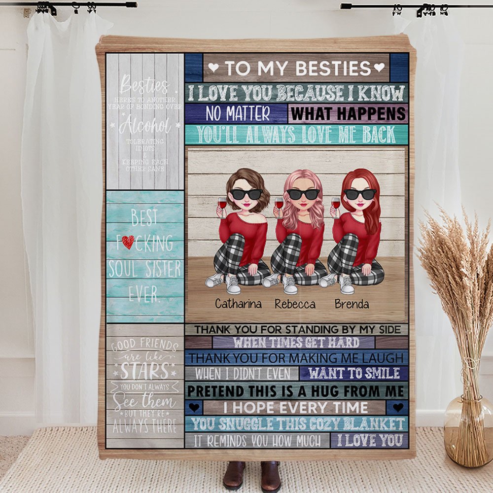 if you're looking for a meaningful and heartfelt gift for your soul sisters, look no further than our Personalized blanket. It's the perfect way to say thank you for being there through thick and thin and for always having your back.