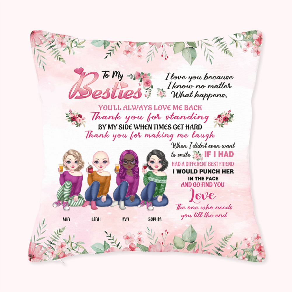 Featuring an exquisite design, our throw pillow cover adds a touch of sophistication and warmth to any living space. The vibrant colors and beautiful typography of the Personalised message make it a delightful addition to your sofa decor. Your bestie will surely be impressed by the attention to detail and the personalization that reflects your unique friendship.