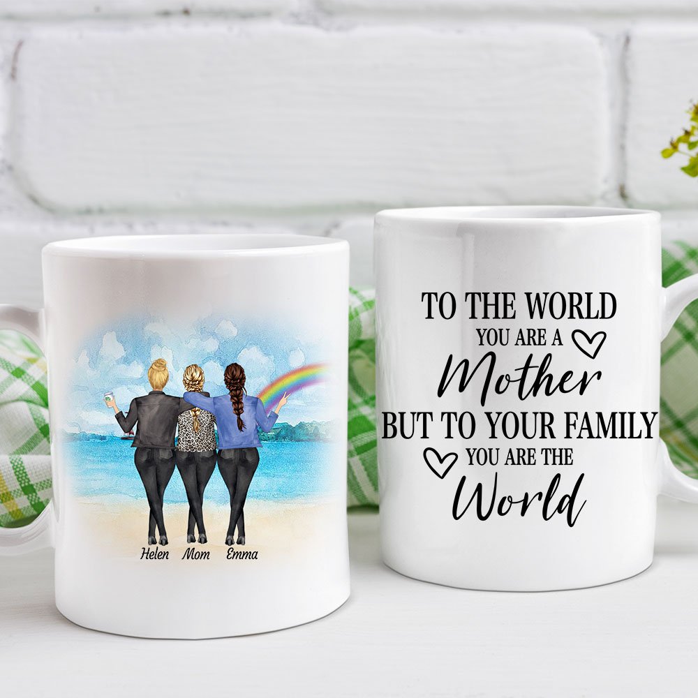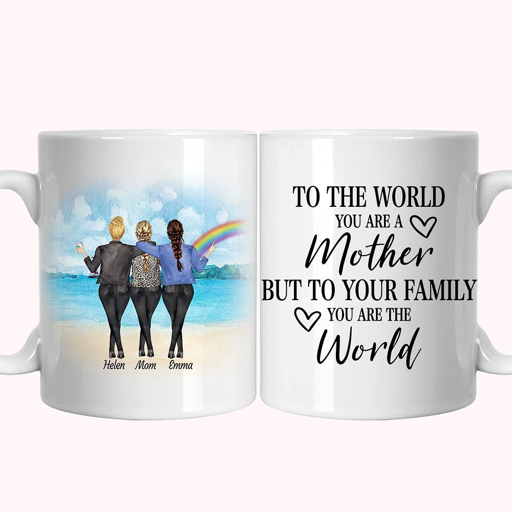 Personalized To The World You Are A Mother Rainbow and Beach Design White Ceramic Mug Gifts
