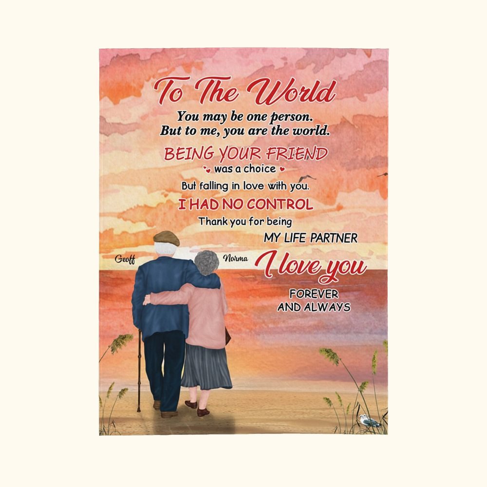 Personalised To The World You May Be One Person But To Me You Are The World Flannel Sherpa Blanket Husband's Gift Wedding Anniversary Gift