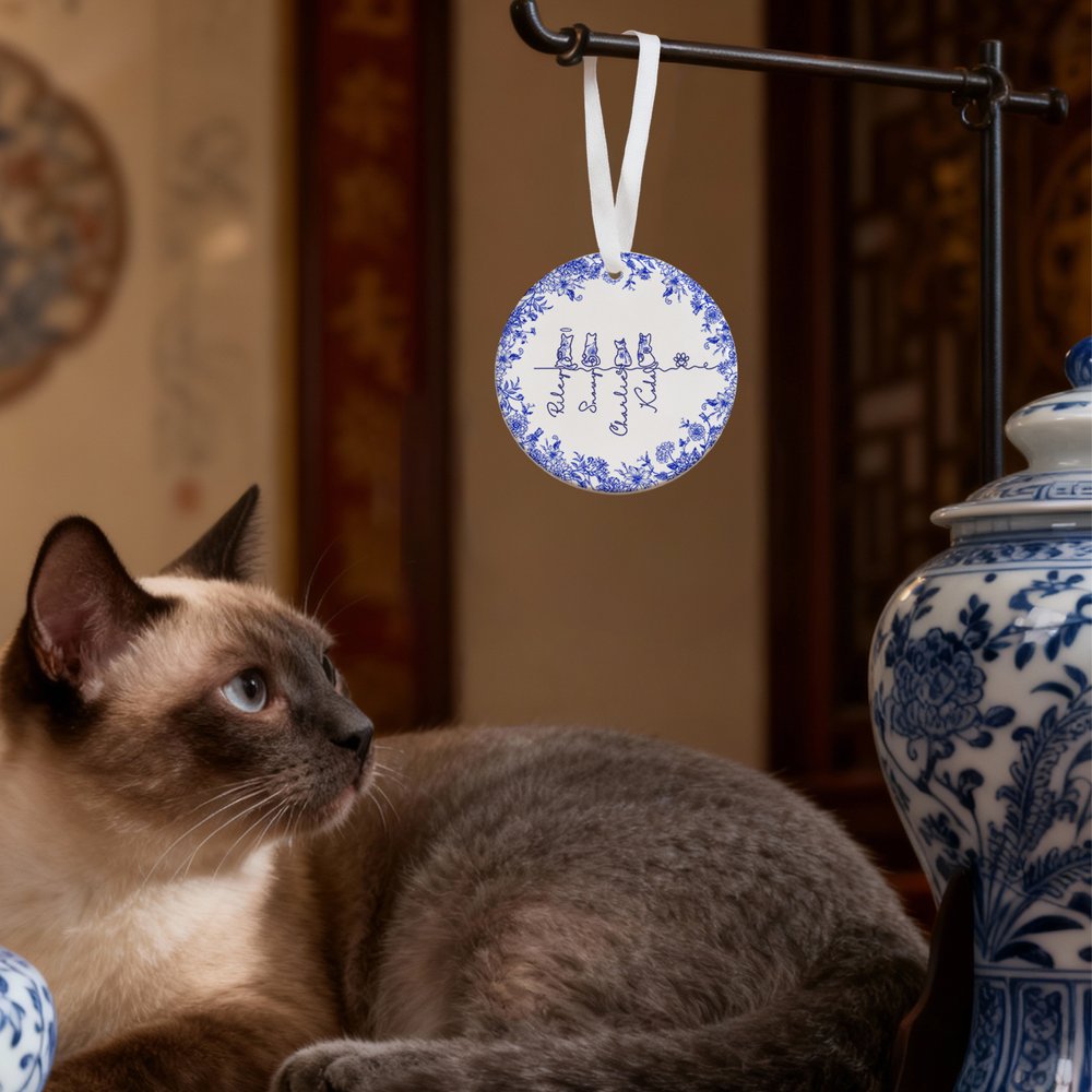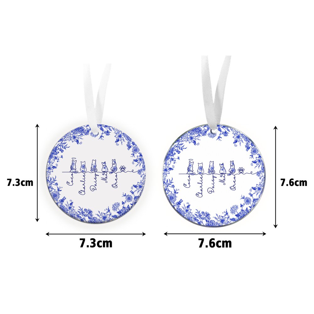 Personalized Toile De Jouy 1-7 Line Art Dogs Cats Christmas Ornament with Names Christmas Memorial Birthday Gift for Pet Owners Lovers