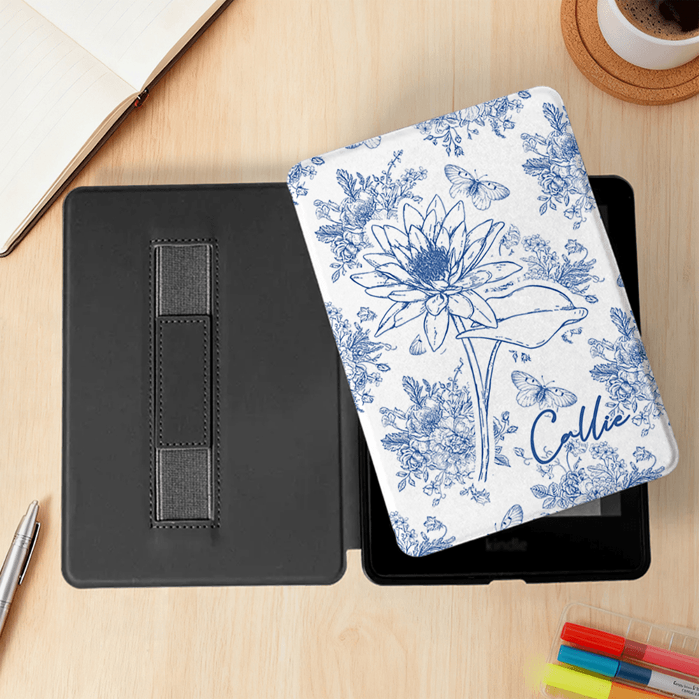 Personalized Toile De Jouy Birth Flower Portable Kindle Case with Name Daily Use Birthday Gift for Book Lovers Bookworms