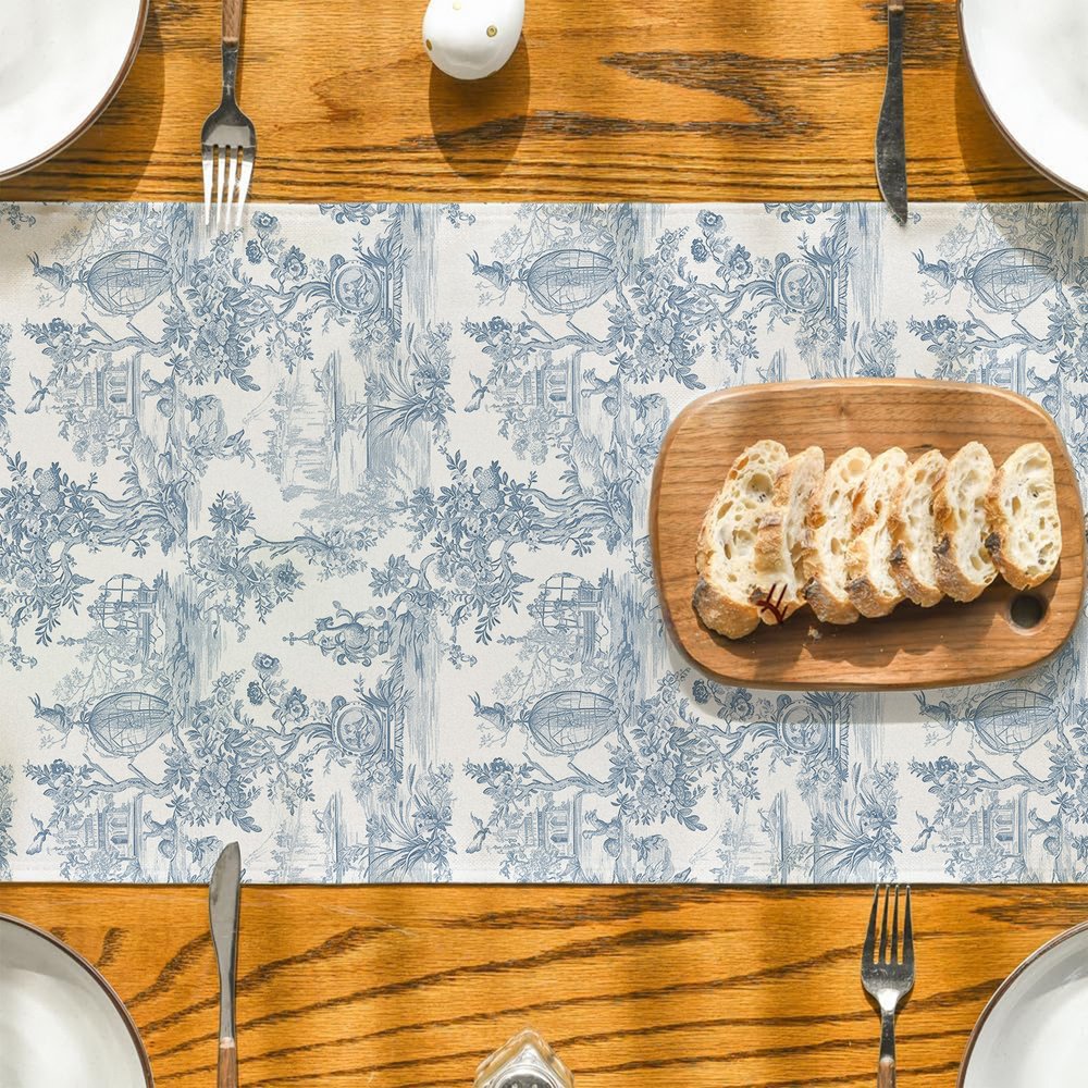 Place it on your dining table to create an elegant French country ambiance, or use it on a console table or side table to add a touch of sophistication to your entryway or living room. The durable material and machine-washable design make it practical for regular use, while the custom design ensures it stands out as a unique piece of home decor. Whether for formal dinners or casual meals, this table runner combines functionality with style.