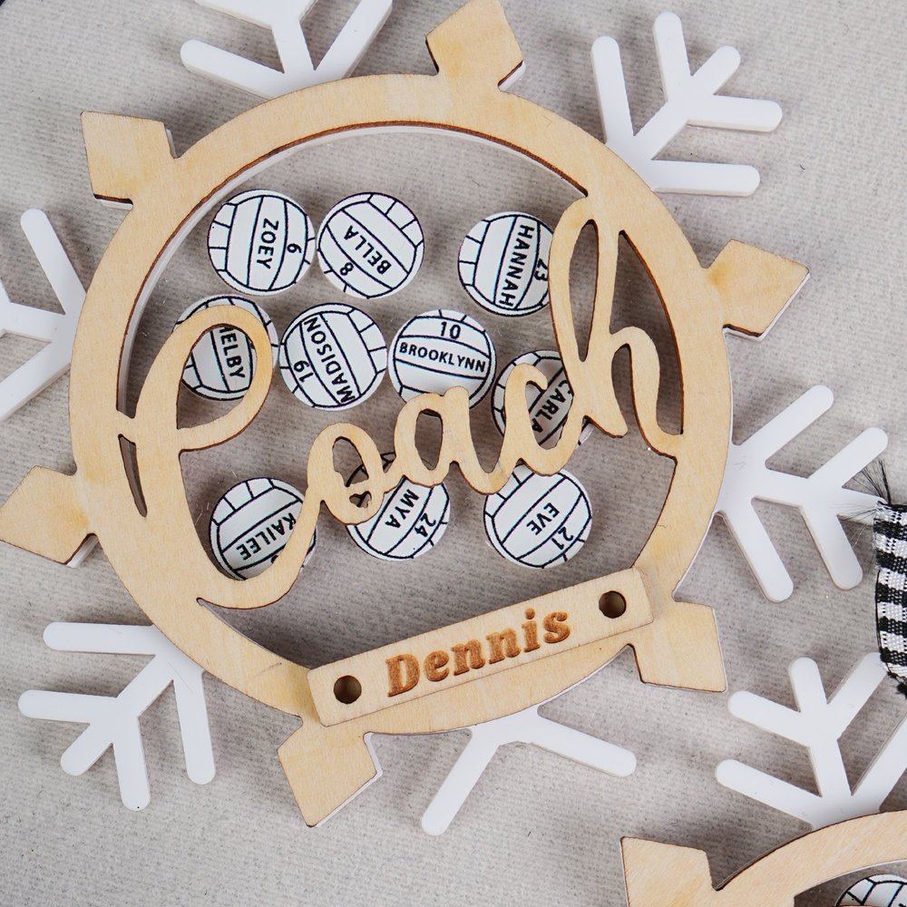 This unique ornament features a volleyball as its core element, designed with creativity and fun in mind. Each piece includes customizable volleyball charms that can be personalized with names, highlighting individuality and team spirit. The overall shape combines snowflakes and snowballs, showcasing the warmth and vibrancy of winter, perfectly blending the passion of volleyball with the festive atmosphere of the season.