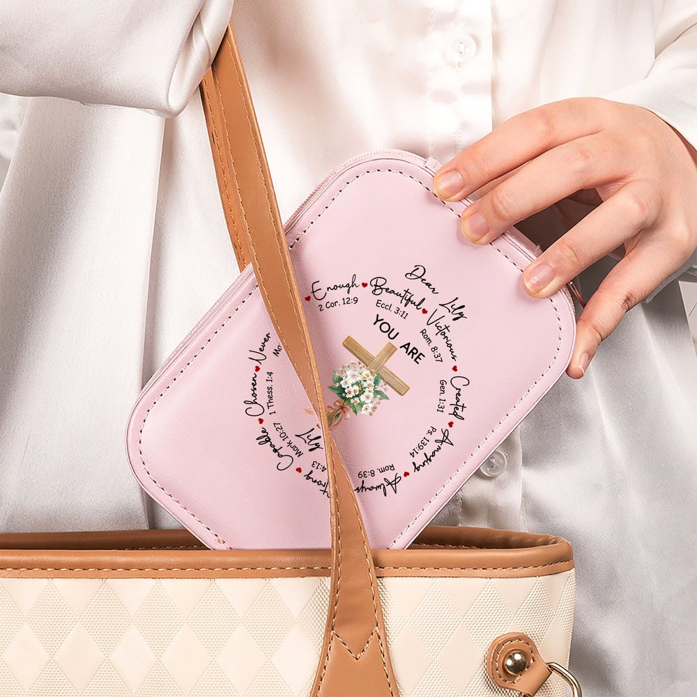 This jewellery box skillfully blends the softness of watercolour art with the solemnity of religious symbols. The surface is printed with an exquisite cross pattern, blooming with birth flowers and surrounded by biblical text, conveying a warm and steadfast faith. Customizable text and names make each jewellery box a unique piece.