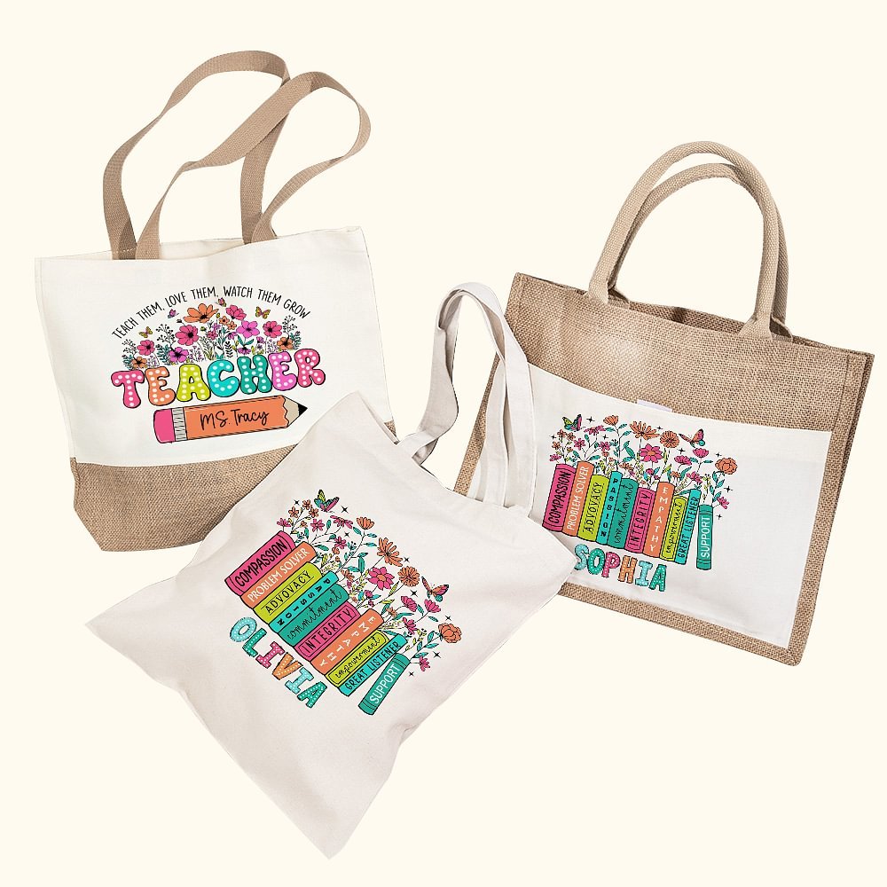 This tote bag has three different styles and two different patterns for you to choose from. It features bright wildflowers, charming, colorful letters, bookshelves full of books, or pencil patterns. You can customize the teacher's name on it, which is a good way to express your gratitude towards your teachers.