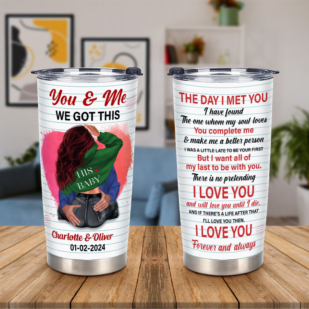 The uniqueness of this tumbler is that you can customize it with your and your other half's names and the dates that are important to you, framing your burning love on this tumbler.