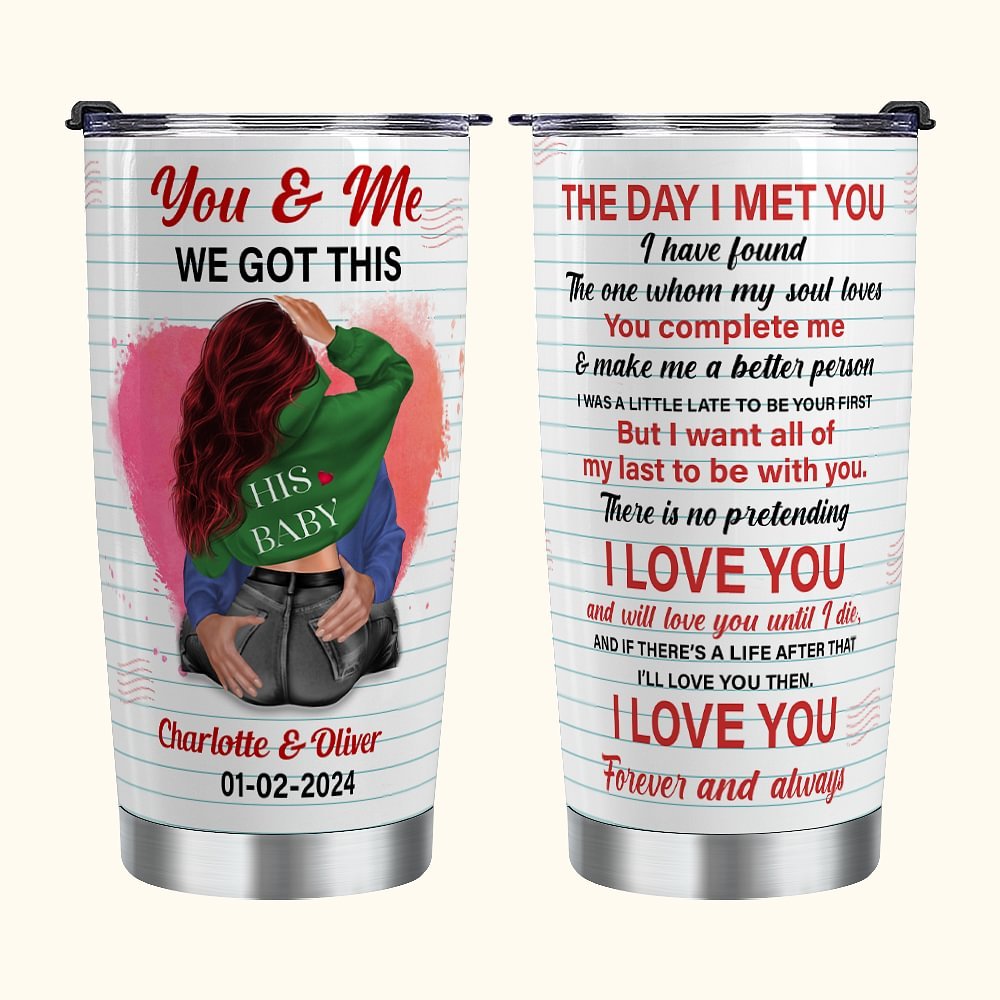 Our tumbler takes a couple embracing each other as the design element, with a watercolor love heart as the background and romantic confession quotes, making the overall design more emotional overtones. While the tumbler itself symbolizes warmth, the lover's design gives it a more passionate and romantic meaning, making this tumbler a true necessity for couples.