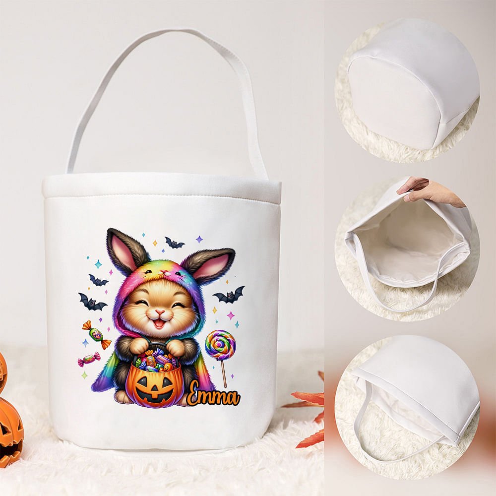 This Sweets basket perfectly captures the mystery and fun of the holiday with its unique watercolour painting style and Halloween theme design. The Sweets basket surface is painted with various Halloween elements, such as jack-o-lanterns, bats, etc., as well as cute animal images, such as bears, rabbits, etc., adding a childlike interest and joy to the festival. The Sweets basket can also be customized with names to make it even more distinctive.