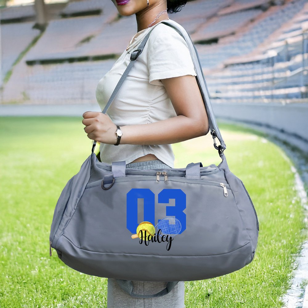 This large travel duffel bag features a sleek and customizable design, allowing you to add your name or a special someone's name, along with their favorite sports number, creating a truly personalized and unique gift.