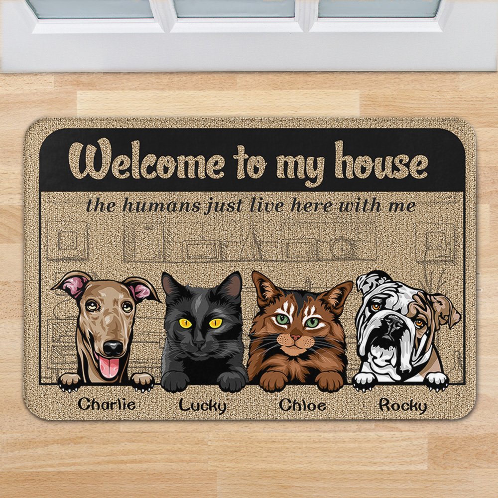 The phrase "Welcome To Our House" shows the humor and fun of pets and their owners. Print this unique phrase on the mat with your pet's exclusive name to treasure the cuteness of your pet and the owner's love for your pet forever.