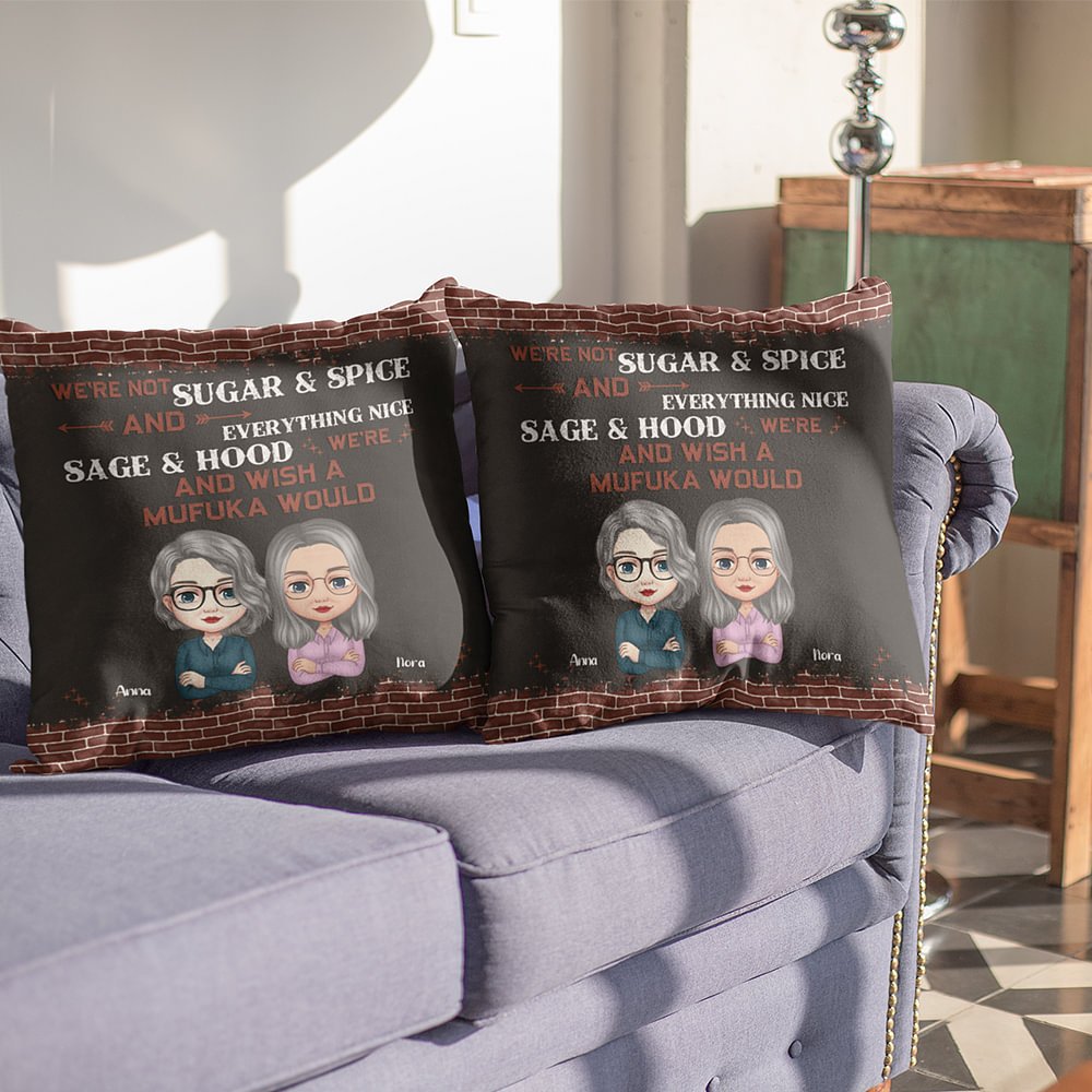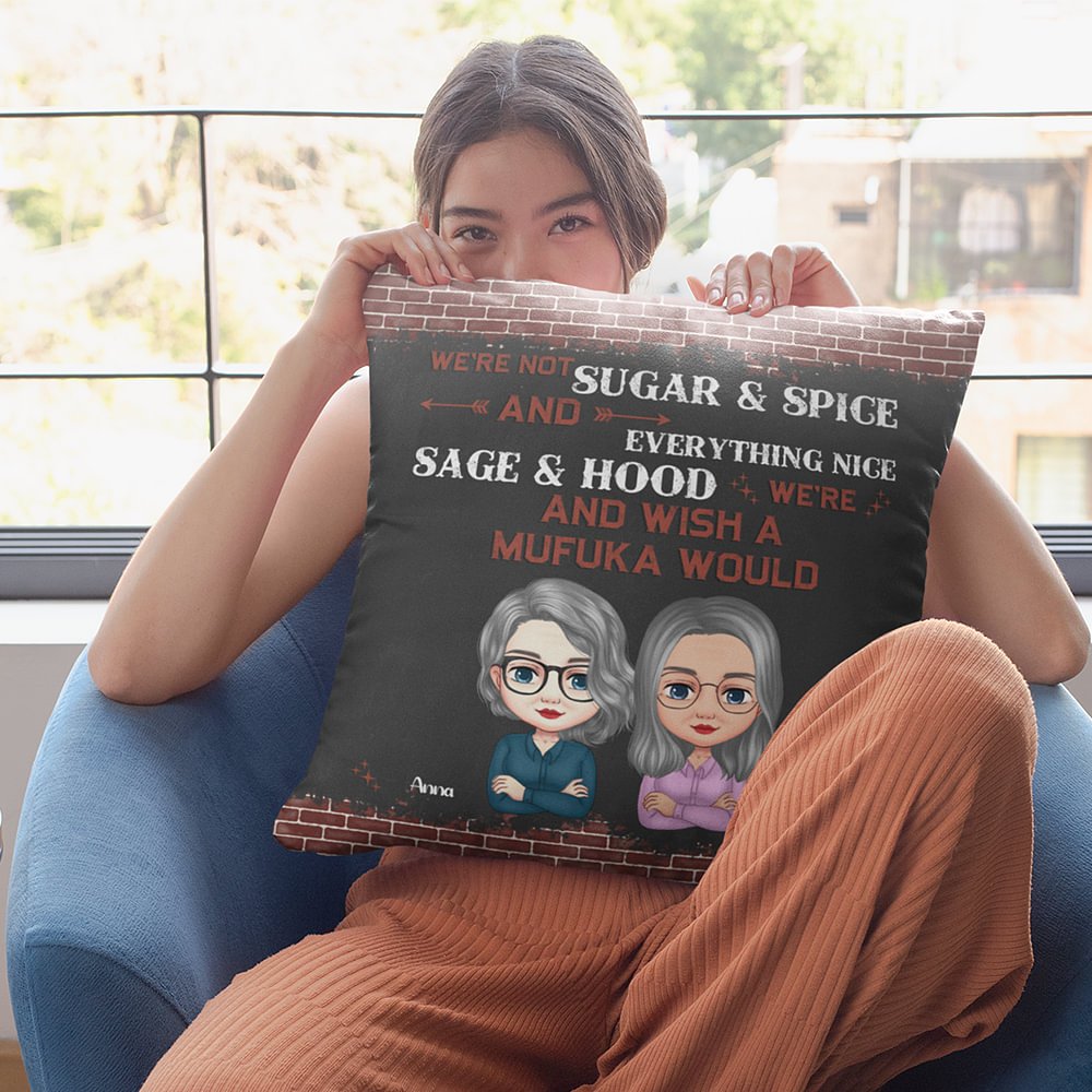 Personalized We're Not Sugar and Spice Everything Nice Throw Pillow Cover Cushion Birthday Gift for Besties Friends Bedroom Decor