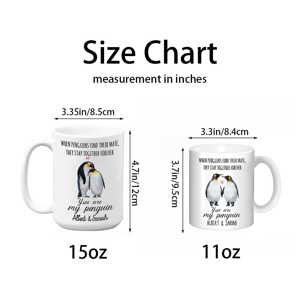 This adorable mug features a cute penguin couple and the heartwarming phrase "When penguins find their mate, they stay together forever." But that's not all - the inside of the mug comes in seven colours, and you can also customize a couple's names on both sides to create a one-of-a-kind couple's mug that represents your unique love story.
