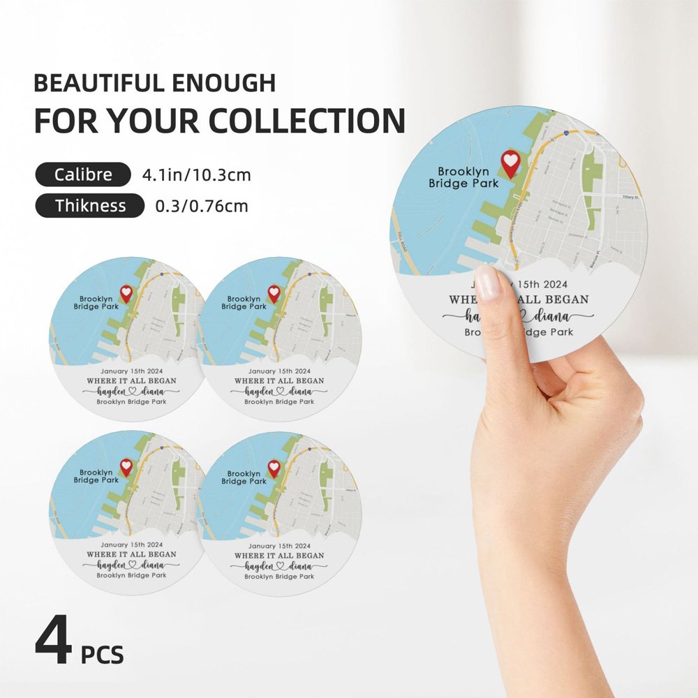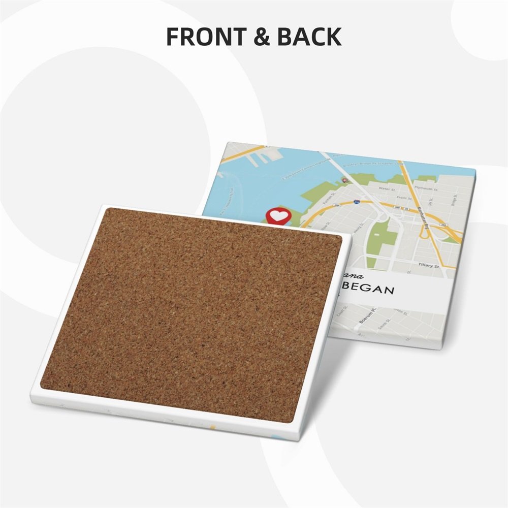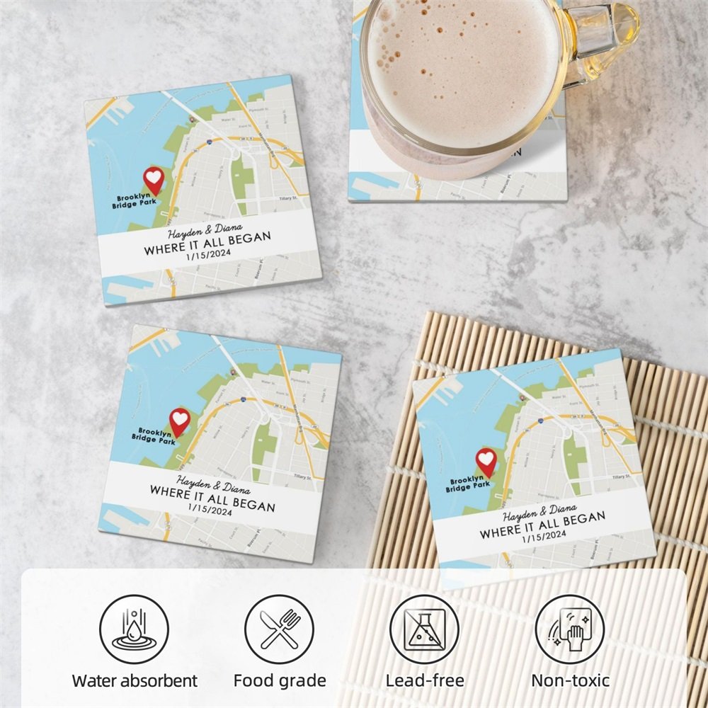 Commemorate the special place where your love story began with our "Where It All Began" map coasters. These coasters boast a unique design that captures the essence of your connection, whether it's the place you first met, got married, or a cherished vacation spot. Elevate your home decor with this Personalized and meaningful touch.