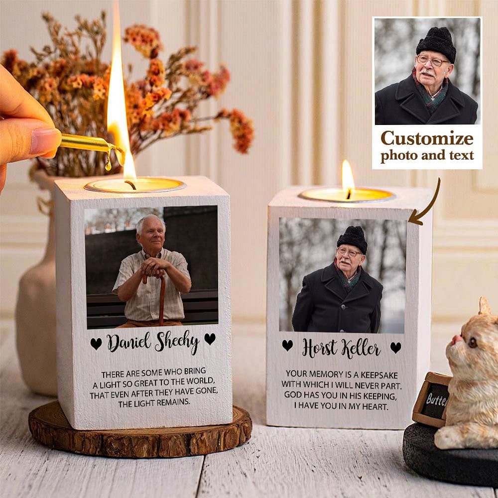 Our candle holders are a heartfelt way to honor and remember your loved ones. This unique memorial gift allows you to customize it with a photo of your loved ones. Every time you light the candles, their life and spirit will shine brightly, creating a cozy atmosphere filled with precious memories.