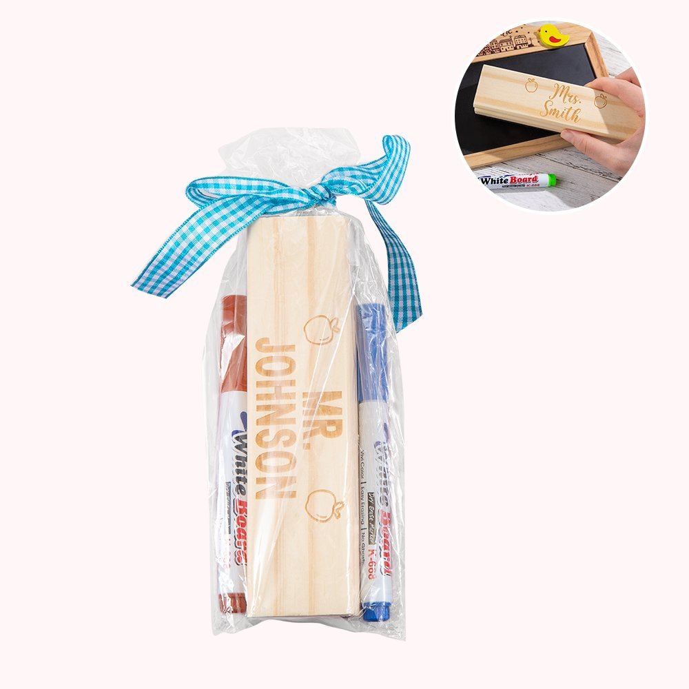Wooden whiteboard eraser/blackboard eraser with an exposition marker pen, comfortable to use, perfect design, you can also choose a font to engrave the name on the eraser, so that someone's gift is created.Show your teacher how much you appreciate them with a super cute personalized white board / chalkboard eraser and expo marker set!!