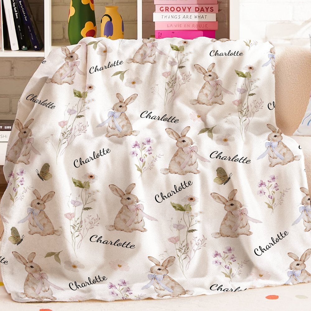 Featuring rabbits and wildflowers as core design elements, paired with a custom name, the overall style exudes a natural freshness and childlike tenderness. The wildflower pattern symbolizes organic growth and independent resilience; the rabbit imagery represents gentle purity, making the blanket a one-of-a-kind keepsake. Each use is infused with exclusive affection and commemorative meaning.