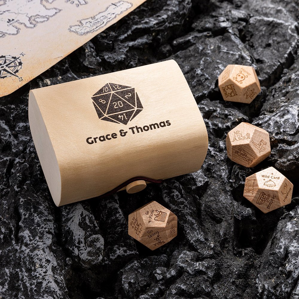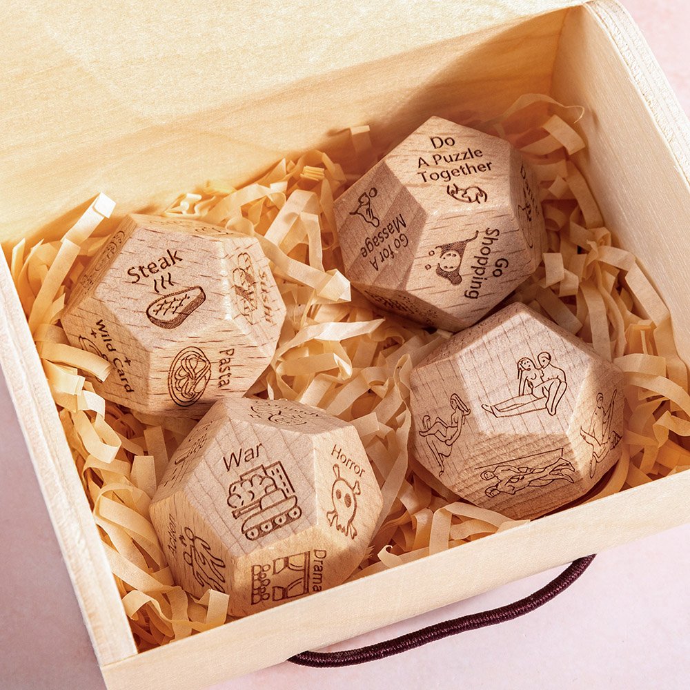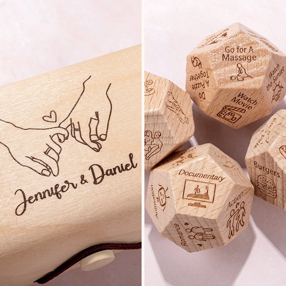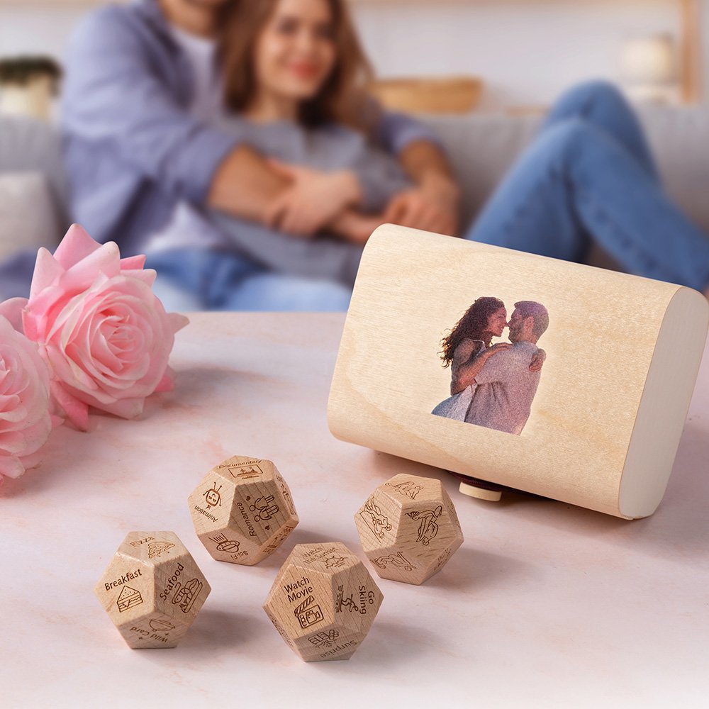 This dice set is the best gift for couples. It is very suitable as a wedding gift, a wooden wedding anniversary gift, a Valentine's Day gift, a birthday gift, etc. Give it to your wife, husband, friends, or family to convey your blessings and expectations for their beautiful love.