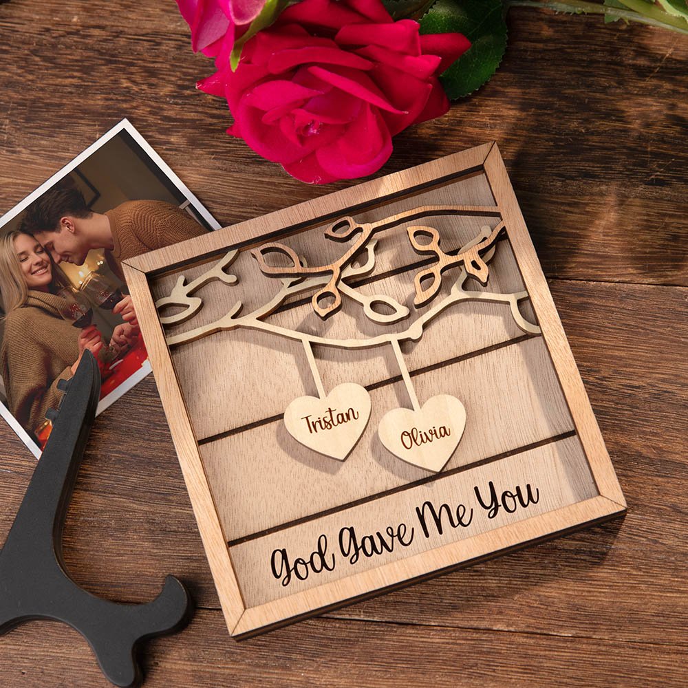 This beautiful wood decor is 5.25" wide and 5.25" tall, and have 2 hearts inside for you to custom couples name. 2 heart scattered on the branches also can be designed with 2 names to represent a special person's in your life. What's more, there is enough room at the bottom of the tree to customize the text you wish. It's a nice way to show your love and connection with she/he, just like a tree and its growing branches.