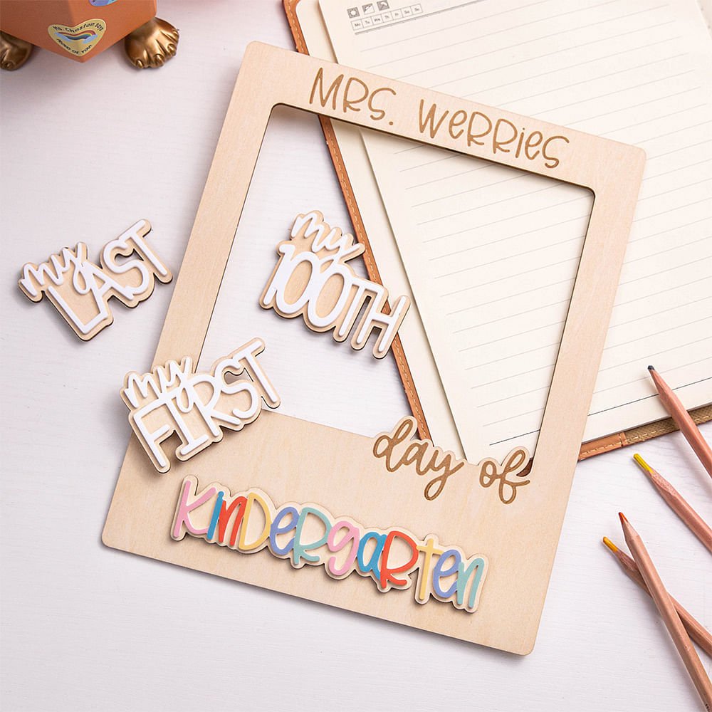 Featuring a dual-layer structure of basswood and acrylic, this frame allows for the easy swapping of labels, from "First Day" to "Last Day" to "100th Day," making it a versatile prop that can adapt to various classroom occasions.