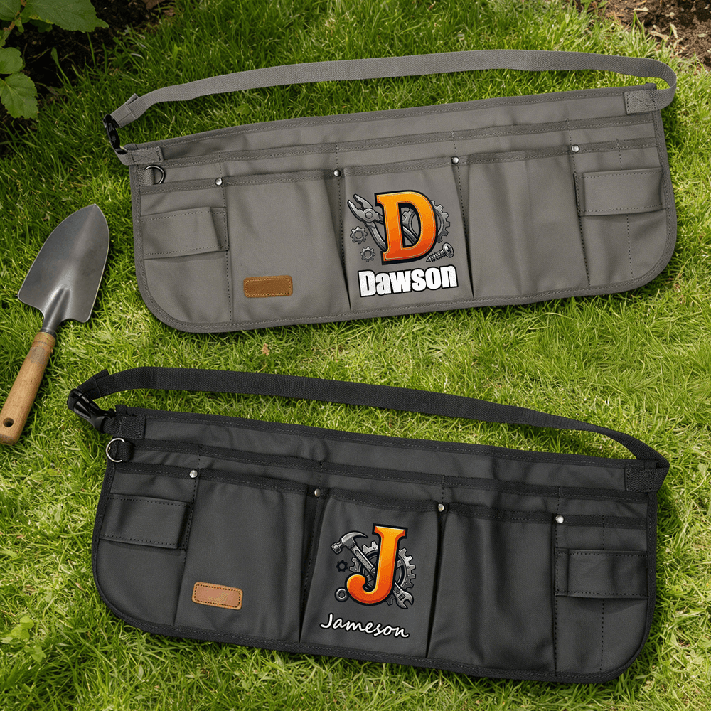 This tool belt features industrial-style elements such as gears, Spanneres, and screws, paired with a vibrant orange initial for bold, eye-catching appeal. Personalize it with a name to make each bag a distinctive professional emblem—practical workwear that also expresses your personality.