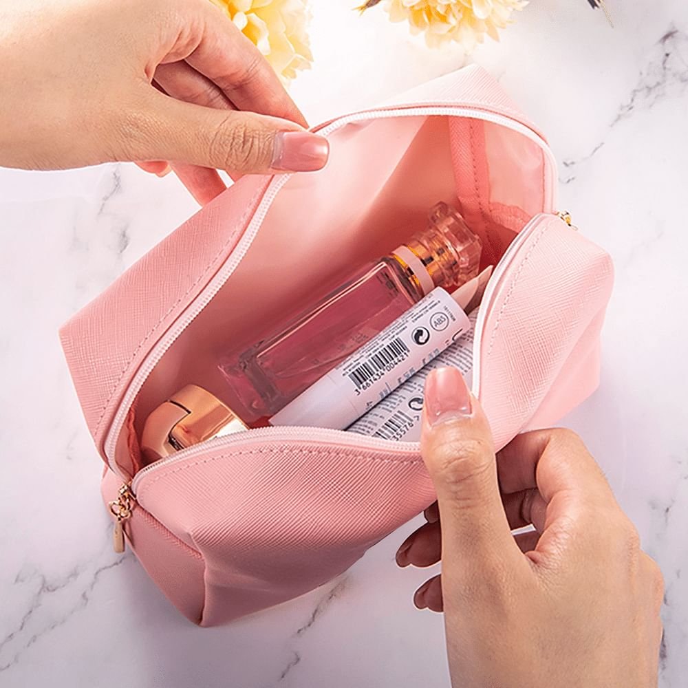 This makeup bag is highly versatile. It's not just for makeup! It can be used as a travel pouch for toiletries, a storage bag for small accessories, or even a stylish clutch for a night out. Its size is perfect for fitting a handbag or suitcase, making it convenient for on-the-go use.