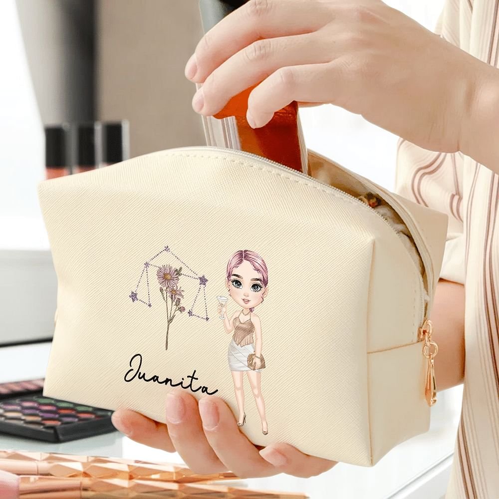 The Personalized cosmetic bag combines the zodiac signs with the birthday flower to represent the birth month, adding a meaningful and beautiful glitter element to the look. The option to add your name makes this cosmetic bag truly unique.